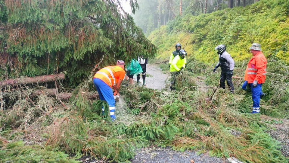 „Sectia de pompieri Sebeș intervine pentru asigurarea masurilor specifice pe raza loc. Sugag între cabana Oasa și Obârșia Lotrului, ca urmare a fenomenelor meteorologice. Din informațiile primite prin SNUAU 112 ar fi vorba despre furtună puternică, vijeli, grindina de dimensiuni mari și mai mulți arbori căzuți pe DN 67C. La momentul de față traficul este blocat pe ambele sensuri. Forțe alocate: 2 x ASAS, 1 x SMURD B2, SVSU Sugag și SDN Alba. Fără victime”, a transmis ISU Alba.