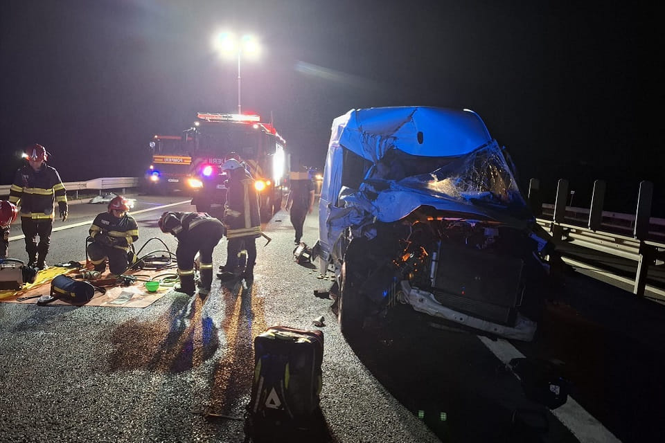 Accident rutier mortal pe Autostrada A1, în apropiere de Răhău. O femeie de 30 de ani a decedat, după ce o autoutilitară s-a izbit de un parapet