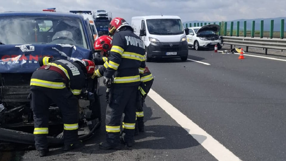 Accident rutier pe Autostrada A1, la kilometrul 313. Intervin pompierii militari din Sebeș