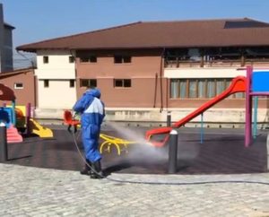 Amplă operațiune de dezinfectare a străzilor, locurilor de joacă, stațiilor de autobuz și a mobilierului stradal din Sebeș