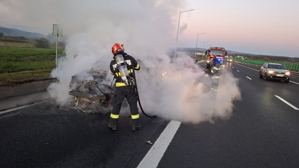 „Detașamentul de pompieri Sebeș intervine pentru stingerea unui incendiu izbucnit pe Autostrada A1, km 317, sensul de mers Sebeș-Orăștie. Din informațiile primite de la apelant este vorba despre un incendiu izbucnit la un autoturism. Forțe alocate: 1 x ASAS”, a transmis ISU Alba.