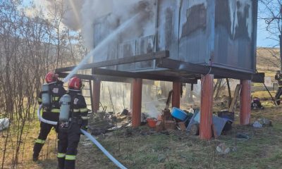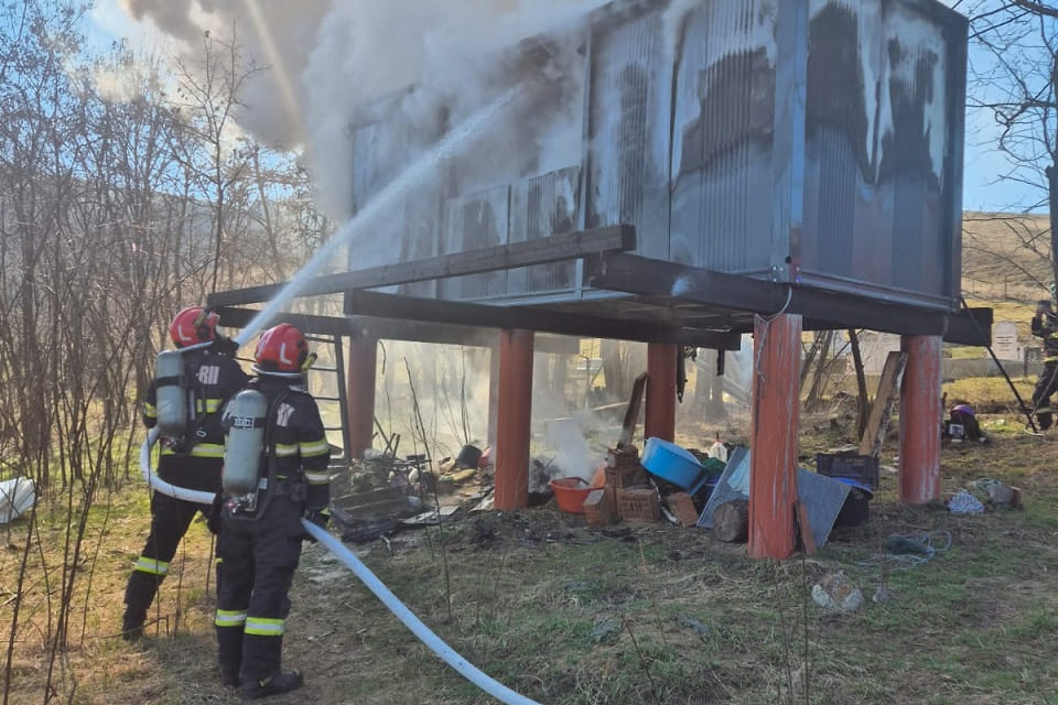 Incendiu izbucnit la un container modular, în comuna Săciori. Au intervenit pompierii militari din Sebeș