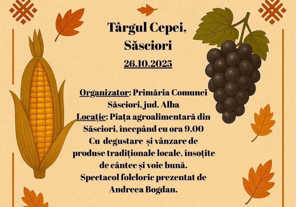 Duminică, 26 octombrie 2025: „Târgul Cepei” la Săsciori