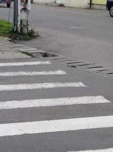 Câteva dale care lipsesc de pe scurgerea stradală, pun în pericol cetățenii care traversează strada pe o trecere de pietoni, situată în apropierea Pieței Dacia din Sebeș