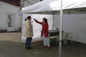 Cort de triaj pacienți montat în curtea Spitalului Municipal din Sebeș, în contextul extinderii epidemiei de coronavirus
