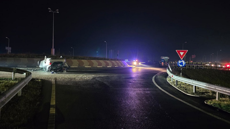 Cum s-a petrecut accidentul rutier de ieri seară, în care un autoturism Mercedes s-a răsturnat în giratoriul din apropierea Kronospan Sebeș