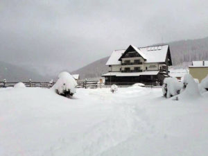 ”Stratul măsoară peste 20 de centimetri pe carosabil. Drumurile din zona respectivă nu s-au mai curățat din 15 martie în condițiile în care a mai nins de multe ori. A nins și azi noapte și ninge și acum. Familia blocată rămâne până vineri la cabană, acum fiind imposibil să coboare. Totodată, aseară au fost mai multe întreruperi de curent”, a spus, corespondentului MEDIAFAX, administratorul pensiunii.