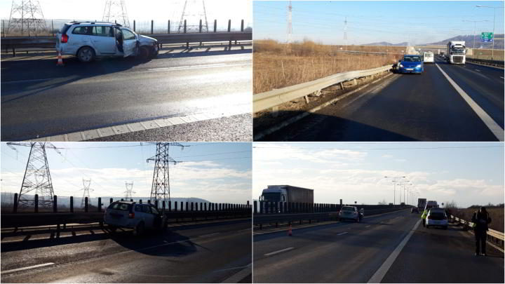 Potrivit IPJ Sibiu, în jurul orei 8.20, pe A1 Rm.Valcea-Deva, la km 242, Sebeș – Sibiu, un bărbat in vârstă de 43 de ani, din Avrig, in timp ce conducea un autoturism pe breteaua de acces în autostrada A1, km 242, a pătruns pe banda 1, încălcând marcajul longitudinal continuu care desparte banda de accelerare de banda nr. 1 fără a respecta semnificația indicatorului “cedează trecerea”, intrând în coliziune cu um autoturism condus regulamentar pe banda nr 1 de către o femeie în vârstă de 34 ani, din jud. Alba.