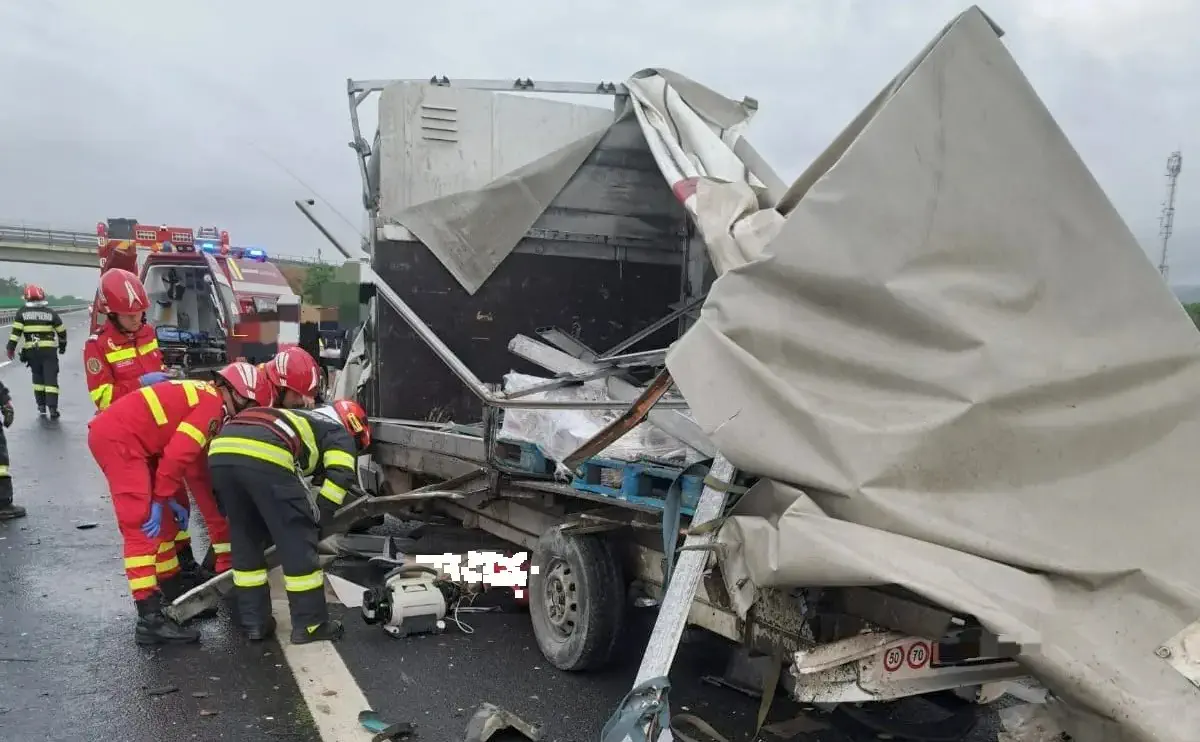 Din primele informații ar fi vorba despre un accident rutier produs între un autoturism și un camion. O persoană e posibil să fie inconștientă.
