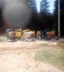 Iar dacă cei ce se ocupă de preluarea gunoiului din zonă întârzie şi nu au trimis o maşină care să ridice resturile menajere din tomberoane, văcuțele din Munții Șureanu fac toată munca în locul lor.