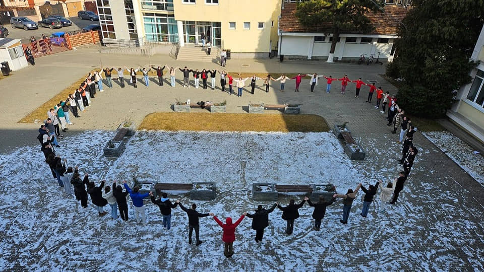 Elevii de la Colegiul Național „Lucian Blaga” Sebeș s-au prins într-o horă impresionantă, în formă de inimă. Ei au marcat astfel finalul unui proiect special.