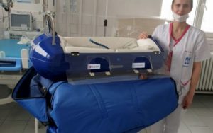 Incubator pentru transportul noilor născuți şi echipamente de protecţie, donate de Organizația „Salvaţi Copiii” către Spitalul Municipal din Sebeş