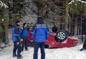 Intervenție a jandamilor montani din Voineasa, după ce un autoturism s-a răsturnat în zona Obârșia Lotrului