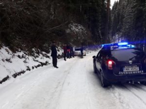 Intervenție a jandarmilor din Șugag pentru ajutarea unor turiști din județul Cluj, ajunși cu mașina în șanțul de pe marginea unui drum din apropierea Domeniului Schiabil Șureanu