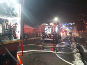 UPDATE: Cauza probabilă a incendiului este scurt circut electric. Pagubele produse de incendiu: acoperișul din lemn cu învelitoare de tablă pe 300 mp, câteva electrocasnice, mobilier din lemn, mai multe materiale textile și materii prime pentru încălțăminte.