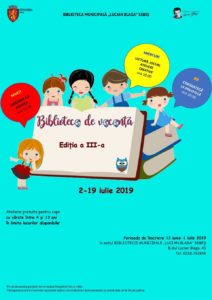 Programul celei de-a III-a ediții a Bibliotecii de Vacanță se va derula de-a lungul intervalului 2-19 iulie 2019, în zilele de marți, miercuri și joi și va cuprinde ateliere de lectură și creație, jocuri, proiecții de film și alte activități surpriză.