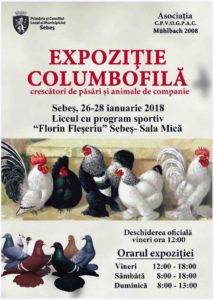 Primăria Municipiului Sebeş, în parteneriat cu Centrul Cultural „Lucian Blaga” şi cu Asociaţia crescătorilor de porumbei voiajori, de ornament, păsări şi animale de companie „Mühlbach 2008″ organizează, în perioada 26 – 28 ianuarie 2018, o nouă ediţie a „Expoziţiei Columbofile”.