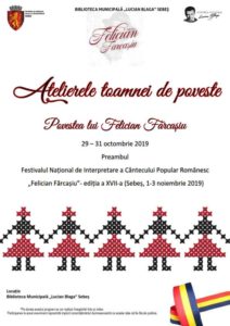 Atelierele toamnei de poveste constituie un preambul la Festivalul Național de Interpretare a Cântecului Popular Românesc „Felician Fărcașiu”- ediția a XVII-a Sebeș, 1-3 noiembrie 2019.