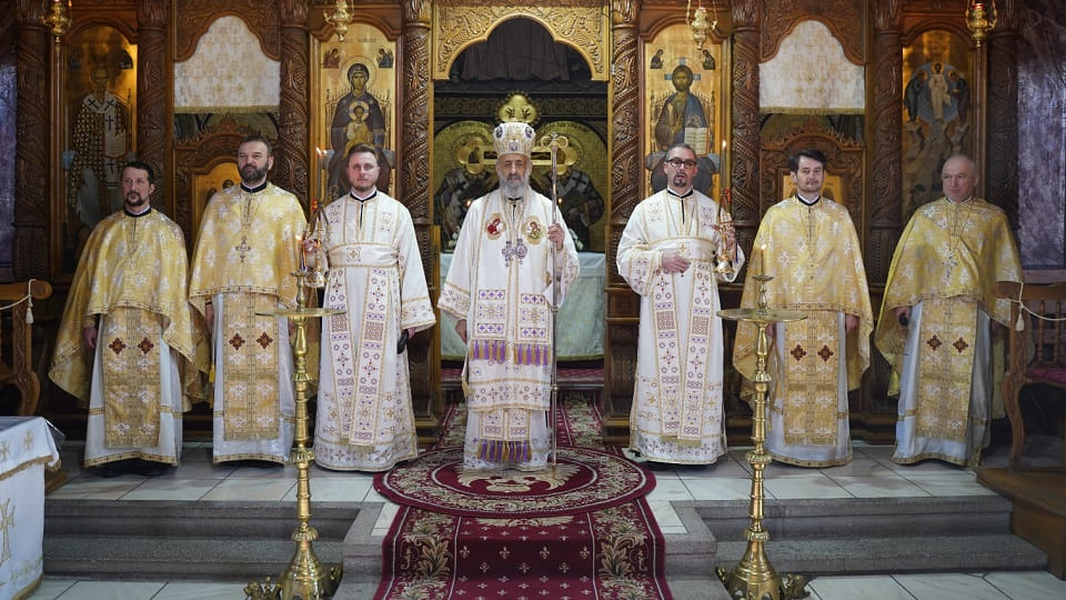 Acesta, înconjurat de un numeros sobor de preoți și diaconi, a săvârșit Dumnezeiasca Liturghie a Sfântului Ioan Gură de Aur și a rostit cuvântul de învățătură în biserica „Schimbarea la Față a Domnului” din localitatea Petrești. Comunitatea parohială de aici se află sub oblăduirea părintelui dr. Marius Slevaș.