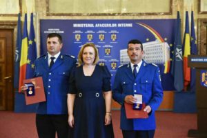 Plutonierul adjutant Todescu Vasile și plutonierul major Bria Paul au primit cea mai importantă distincție a Ministerului Afacerilor Interne: placheta de onoare. Aceștia au fost premiați și felicitați de către doamna Carmen Dan, ieri 16 iulie 2019, cu ocazia Zilei M.A.I.