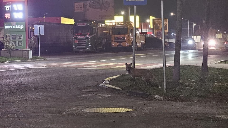 O vulpe a fost filmată, în seara de marți, 4 noiembrie 20225, în zona supermarketului Kaufland din Municipiul Sebeș.