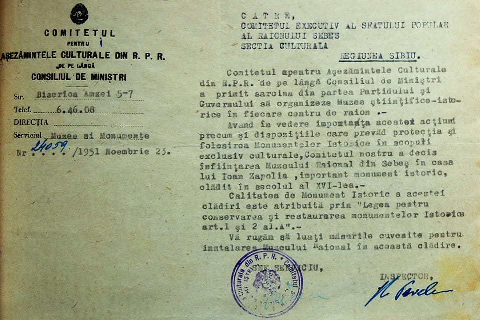 Pe 23 noiembrie 1951, în urmă cu 74 de ani, Muzeului Raional Sebeș (actualul Muzeu Municipal), înființat cu câteva luni mai devreme (21 martie 1951), i-a fost alocată drept sediu Casa Zápolya, una dintre clădirile-simbol ale orașului – cel mai important și mai valoros monument laic din localitate și din zonă – ale cărei începuturi sunt anterioare secolului al XV-lea.