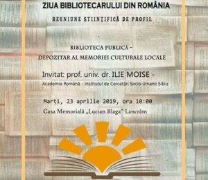 Marți, 23 aprilie 2019: Reuniune științifică la Casa Memorială „Lucian Blaga” din Lancrăm dedicată Zilei Bibliotecarilor din România