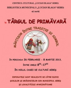 În perioada 26 februarie – 8 martie, Biblioteca Municipală „Lucian Blaga” Sebeş organizează Târgul de primăvară – “Mărţişor între tradiţie şi simbol”, în cadrul proiectului „Serbările primăverii”, ediţia a II-a.