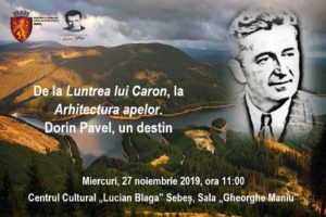 Miercuri, 27 noiembrie 2019, începând cu ora 11:00, sala „Gheorghe Maniu” a Centrului Cultural „Lucian Blaga” Sebeș va găzdui conferința omagială „De la Luntrea lui Caron, la Arhitectura apelor. Dorin Pavel, un destin”, eveniment dedicat memoriei celui care a fost și este considerat părintele hidroenergeticii românești.