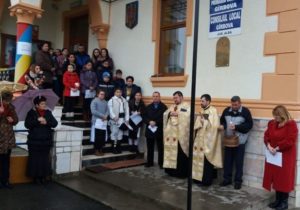 Moment artistic susținut de corul Școlii Gimnaziale din Gârbova, cu prilejul ceremoniei de dezvelire a plăcii omagiale dăruite comunei de către CJ Alba cu prilejul Centenarului