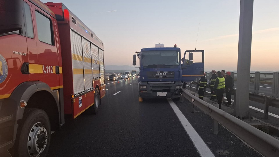 „Detașamentul de pompieri Sebeș intervine pentru asigurarea măsurilor specifice și prim ajutor medical la un accident rutier produs pe Autostrada A1 la km 304. În accident ar fi implicat un autocamion fară încărcătură. Forțe alocate: 1 x descarcerare, o autospecială de stingere cu apă și spumă și 1 x echipaj de prim ajutor”, a transmis ISU Alba.