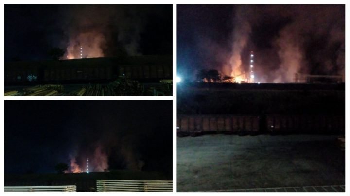 Patru buncăre cu rumeguș, amplasate pe platforma fabricii Kronoșpan, au fost distruse de flăcări noaptea trecută. Localnicii spun că flăcările au izbucnit după ce s-au auzit două explozii, destul de puternice, la un interval de 2-3 minute. Zgomotul a avut ecou până în Valea Frumoasei.