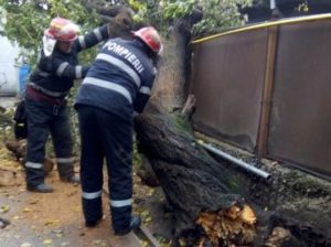 Pericol de incendiu la Sebeș după ce un copac doborăt de vânt a căzut peste firele rețelei de electricitate și a provocat un scurt circuit