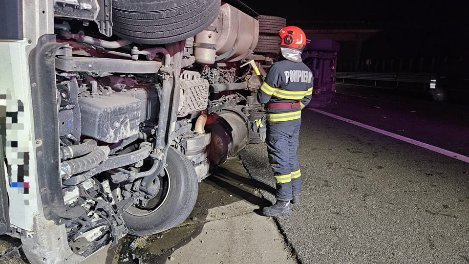 „Detașamentul de pompieri Sebeș intervine pentru descarcerare și prim ajutor medical la un accident rutier produs pe Autostrada A1, sensul de mers Sebeș – Oraștie. În accident ar fi implicat un autocamion cu lemne care s-ar fi rasturnat, posibil o persoana încarcerată. Forțele alocate: 1 x ASAS, 1 x Descarcerare și 1 x EPA”, a transmis ISU Alba.