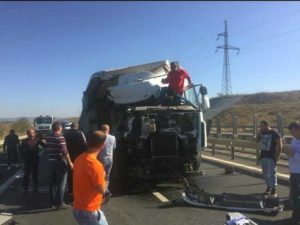 Un accident rutier grav s-a produs astăzi, 16 octombrie 2018, în jurul amiezei pe Autostrada A1, între Sibiu și Sebeș. O persoană rănită după o coliziune între două camioane.