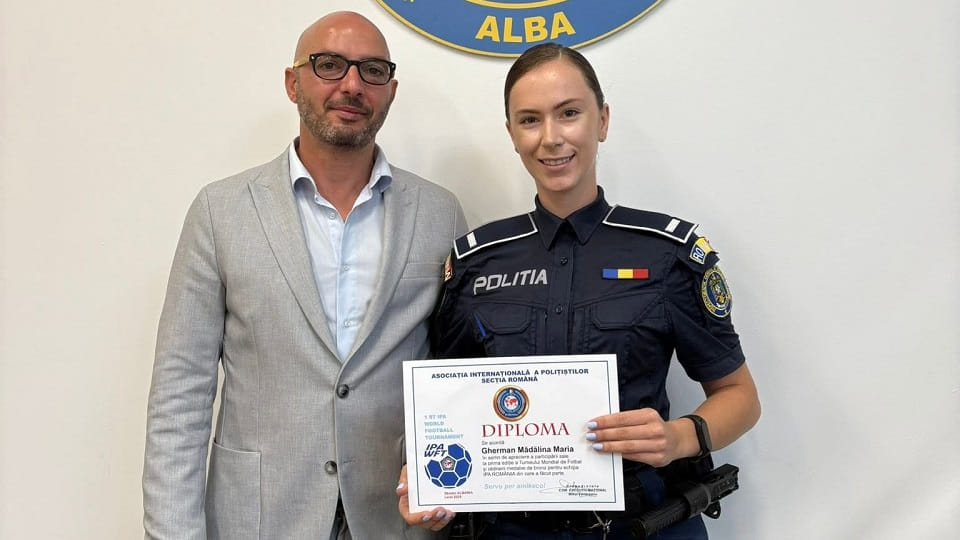 „Ne mândrim cu colega noastră Gherman Mădălina, care a obținut medalia de bronz la Turneul Mondial de Fotbal, pentru echipa IPA România, din care a făcut parte. Pentru că noi credem în exemplul personal, vă îndemnăm să urmați exemplul colegei noastre. Munca în echip = SUCCES. Felicitări, Mădălina!”, au transmis reprezentanții IPJ Alba.