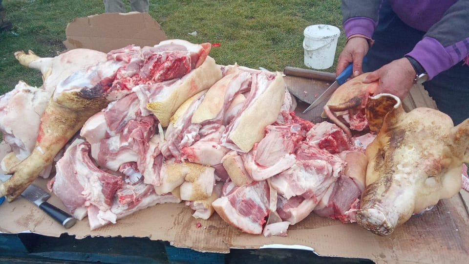 Porc donat de un bărbat din Loman catre mai multe familii nevoiașe din județul Alba