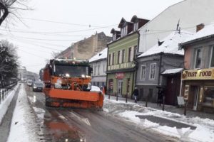 Primăria Sebeș anunță ca un număr de șase utilaje de deszăpezire au curățat zăpada pe arterele principale din oraș și la Petrești