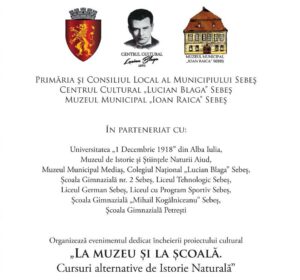 Centrul Cultural „Lucian Blaga” Sebeș, prin Muzeul Municipal „Ioan Raica” Sebeş, a câştigat, în urma competiţiei lansate de Administraţia Fondului Cultural Naţional, o finanţare nerambursabilă, în valoare de 70.000 lei, pentru implementarea proiectului cultural „La muzeu și la școală. Cursuri alternative de Istorie Naturală”.