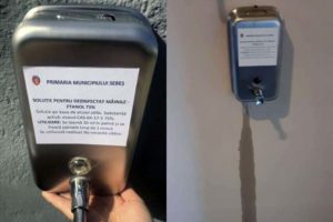 Cititoarea ne-a scris și urmatoarele rânduri: „Inițial m-am bucurat foarte mult când am văzut că a fost montat un recipient cu dezinfectant în scara blocului în care locuiesc, având în vedere epidemia de COVID-19. Însă bucuria mi-a fost, din păcate, de scurtă durată deoarece după nici 24 de ore de la montare, recipientul este deja defect iar dezinfectantul în loc să „curgă” pe mâinile locatarilor a curs pe peretele din scara blocului. Se pare că sunt bani aruncați în vânt… ”