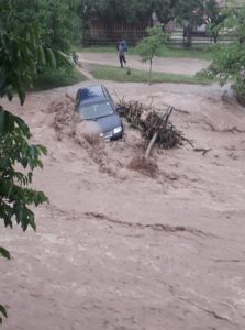 Rupere de nori în comuna Pianu. Un autoturism a fost luat de torentele formate