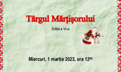 Miercuri, 1 martie 2023, 쎮ncep쎢nd cu ora 12:00, Centrul Cultural Lucian Blaga Sebe좙 va g쒃zdui cea de-a VI-a edi좛ie a T쎢rgului de M쒃r좛i좙oare, manifestare menit쒃 s쒃...