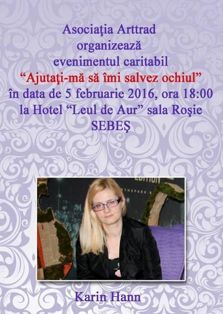 Asocia얣ia Arttrad organizeaz쒃 m쎢ine, 5 februarie 2016, de la ora 18.00, 쎮n Sala Ro얟ie a Hotelului Leul de Aur din Sebe얟, evenimentul caritabil Ajuta얣i-m쒃 s쒃 쎮mi...