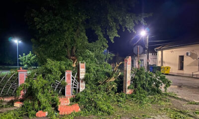 Un copac, dobor쎢t de furtuna care s-a ab쒃tut 쎮n cursul serii de ieri asupra comunei Vin좛u de Jos, a deteriorat serios gardul 좙i cupola de la...