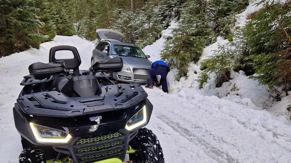 Cuplu de tineri, rămas blocat cu autoturismul în zona lacului Canciu, recuperat de salvamontiștii staționați la Domeniul Schiabil Șureanu