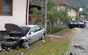 Un accident rutier mai puțin obișnuit, pe șoselele de la noi, a avut loc duminică după-amiază, în jurul orei 18.30 în localitatea Șugag, ambele mașini implicate fiind serios avariate.