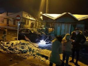Un șofer și-a avariat serios autoturismul, după ce a derapat și s-a izbit de chioșcurile amplasate într-o stație de autobuz din Sebeș