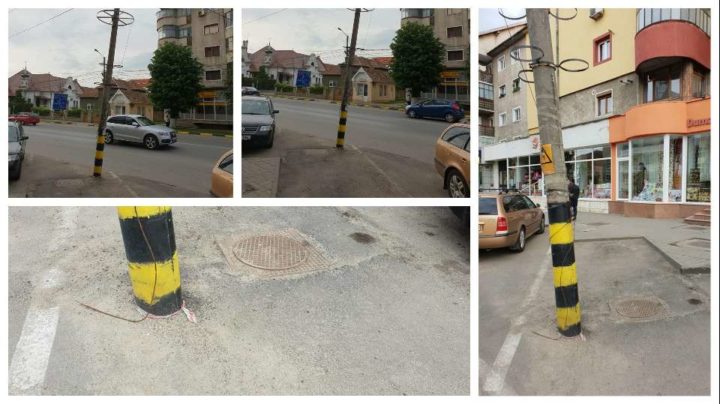 Un stâlp de energie electrică, sprijinit doar în cabluri, pune în pericol viața locuitorilor din Sebeș