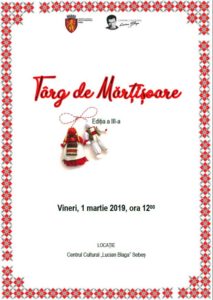 Vineri, 1 martie 2019, începând cu ora 12:00, Primăria şi Consiliul Local al Municipiului Sebeş, Centrul Cultural „Lucian Blaga” Sebeş, în parteneriat cu unităţile şcolare locale şi Direcţia de Asistenţă Socială Sebeş, vă invită la cea de-a treia ediţie a Târgului de Mărţişoare.